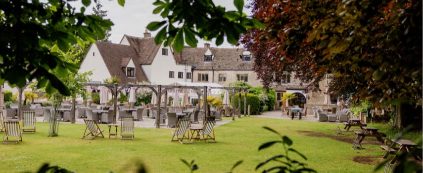 Perched high on Rodborough Common with sweeping views of the Cotswold countryside, The Bear is a former 17th-century coaching inn full of character. With its cosy nooks, roaring fires, and vast open spaces right on the doorstep, it’s a charming retreat for walkers, food lovers, and those seeking a true taste of the Cotswolds.