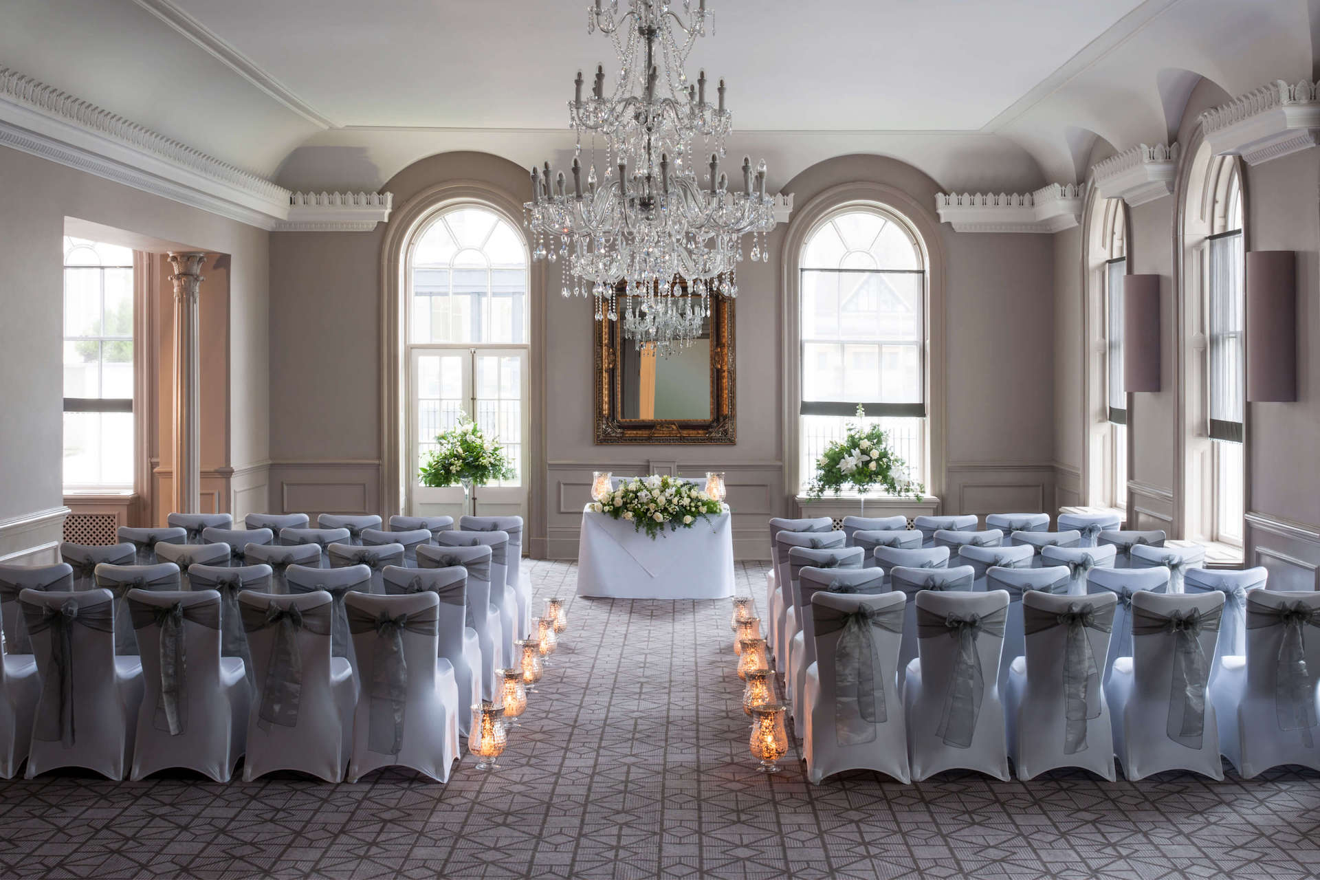 Glide through the revolving doors into Queens Hotel, Cheltenham and you enter a splendid civilised haven where guests are the centre of highly attentive and discreet service. Queens offers you an opulent backdrop for a memorably spectacular, perfect wedding or civil partnership celebration. Your dedicated wedding planner has established an excellent reputation locally for bespoke flexibility and creativity, supporting every arrangement with calm professionalism to ensure you have the most flawless and beautiful of days.