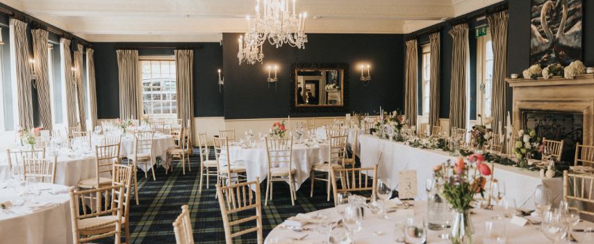 The iconic Swan Hotel is located in Bibury village in the Gloucestershire Cotswolds. Bibury is often described as the prettiest village in England and The Swan Hotel can be found at the very centre of it, with a picture-perfect ivy-clad façade and stunning riverside gardens. The private gardens are licensed for the most beautiful Summer ceremonies and also home to a gentle trickling stream that’s popularly used for rubber duck racing! Step inside and the collection of rooms from which to host your special day are equally as beautiful and conveniently located together within one wing of the hotel.