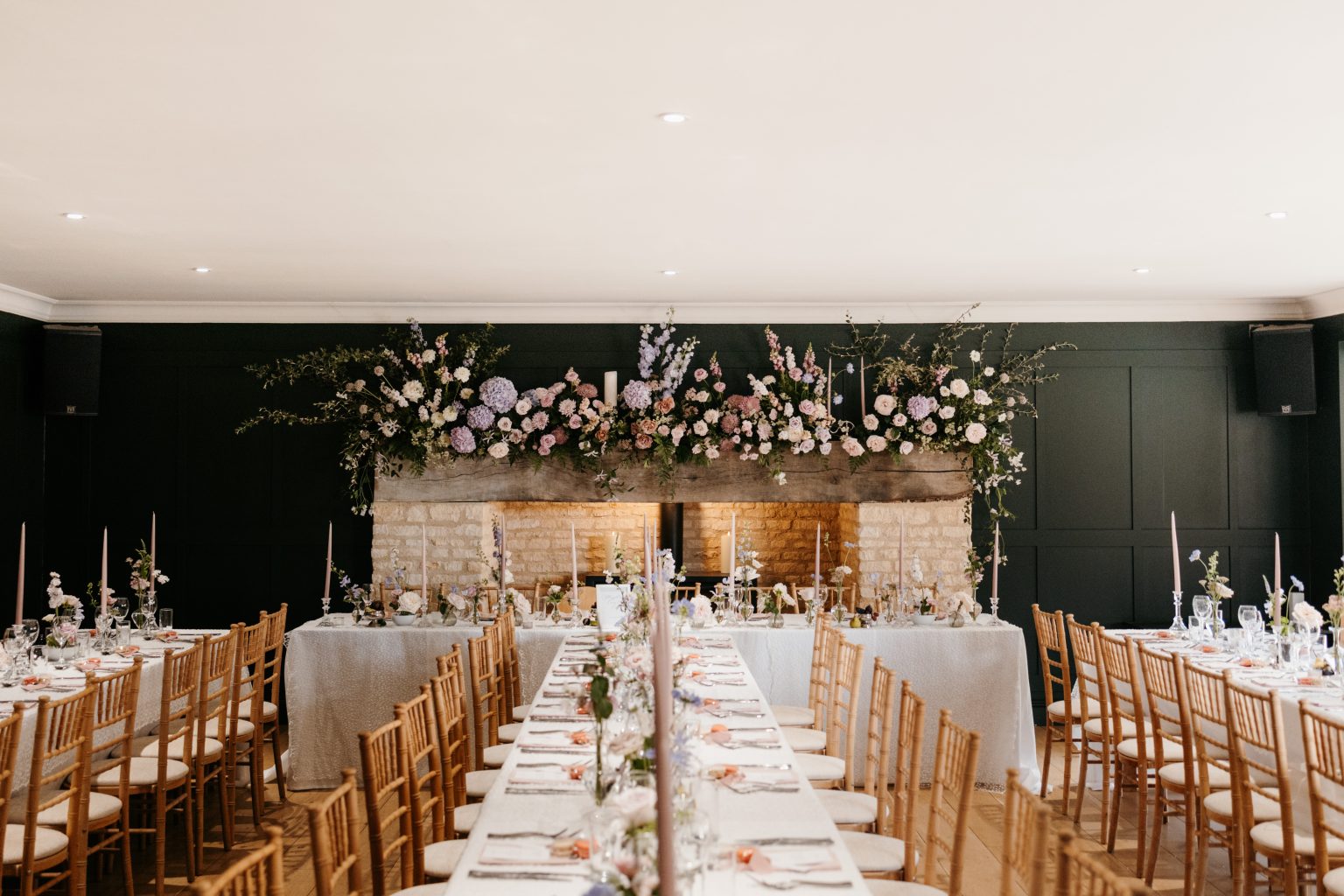 Our venue features a beautifully designed indoor space with modern interiors and a striking fireplace, ideal for your ceremony, reception and evening festivities. For those who dream of an outdoor wedding, our lakeside ceremony space offers a breath-taking backdrop, complete with oak trees and the tranquil waters of the lake. The courtyard garden provides a charming setting for socialising and relaxation, complete with rustic seating, fire pits and festoon lighting.